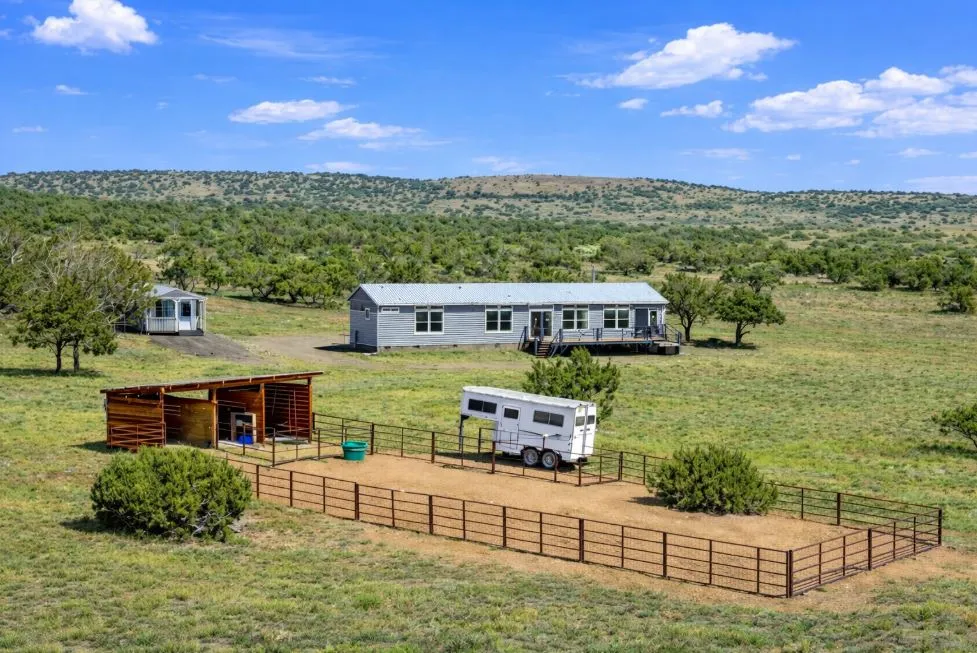 Private, turn-key horse property on 56 acres bordering public land. This stunning modular (not manufactured) home is only 3 years old and priced well below cost. Built to IRC (stick built) standards on a solid slab and stem wall foundation, this home features 9′ ceilings, solid surface countertops, and upgraded, energy-efficient insulation. The quality of this home is highlighted by abundant windows that pair passive solar gain with stunning views from every room. The large kitchen boasts stainless steel appliances, shaker cabinets, and a massive island. The second bedroom could serve as a breathtaking sunroom or serene home office.